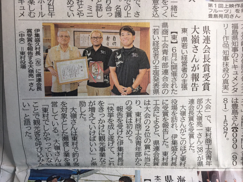 大嶺亮一さん(大嶺渡船)、琉球新報に掲載して頂きましたー(^o^)/