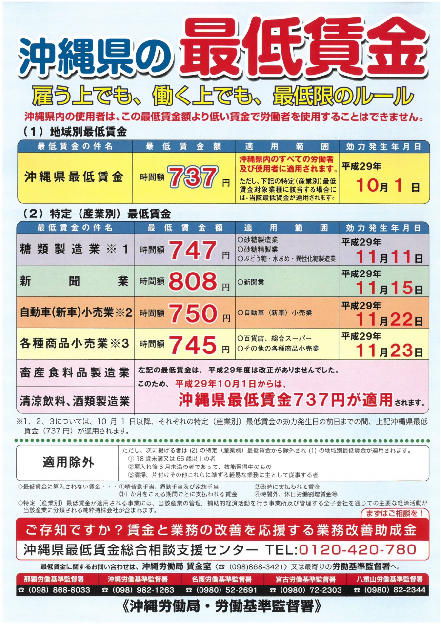 沖縄県(産業別)最低賃金の改正がありましたので、お知らせします。