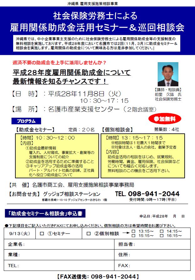 社会保険労務士による雇用関係助成金活用セミナー&巡回相談会
