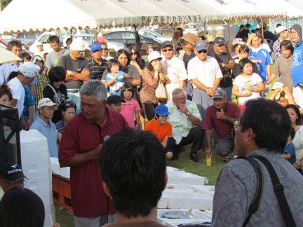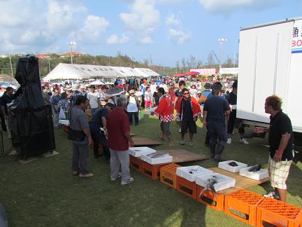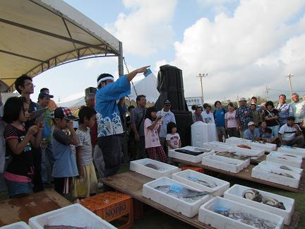 漁協のみなさんと、役場、青年部の迅速な対応でステージ前があっという間にセリ市場みたいな雰囲気になりました。