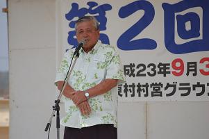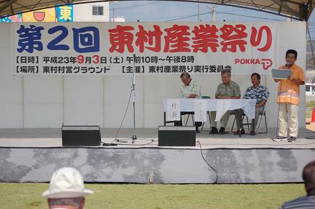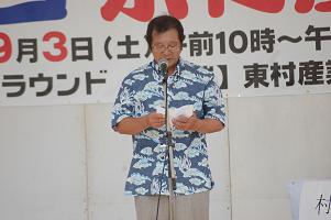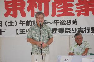 商工会、役場、議会からの代表者の挨拶を受けて第2回東村産業祭りが開催されました。