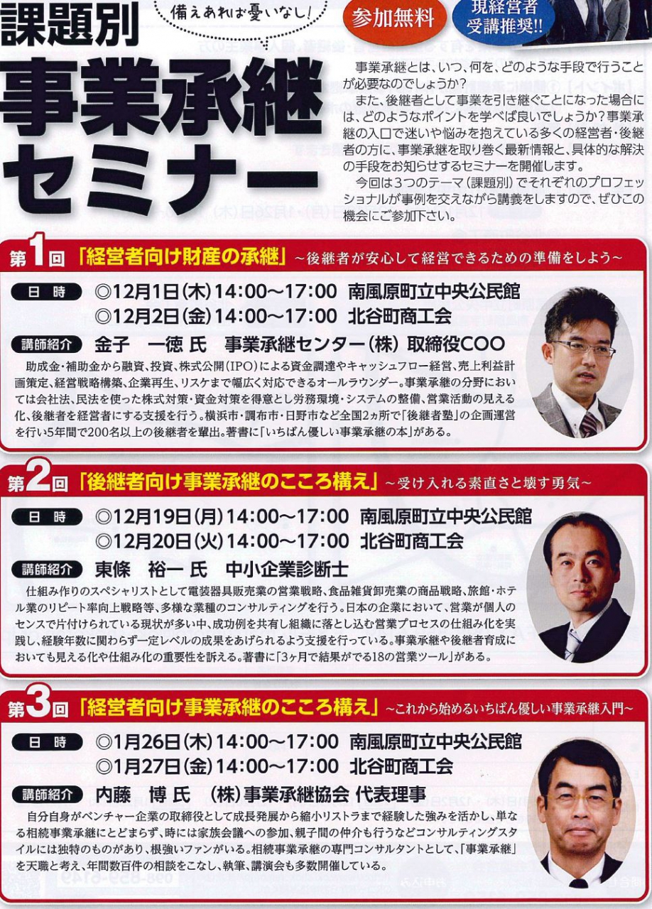 対象者:県内にて事業を有する企業経営者・後継者、個人事業主の方。