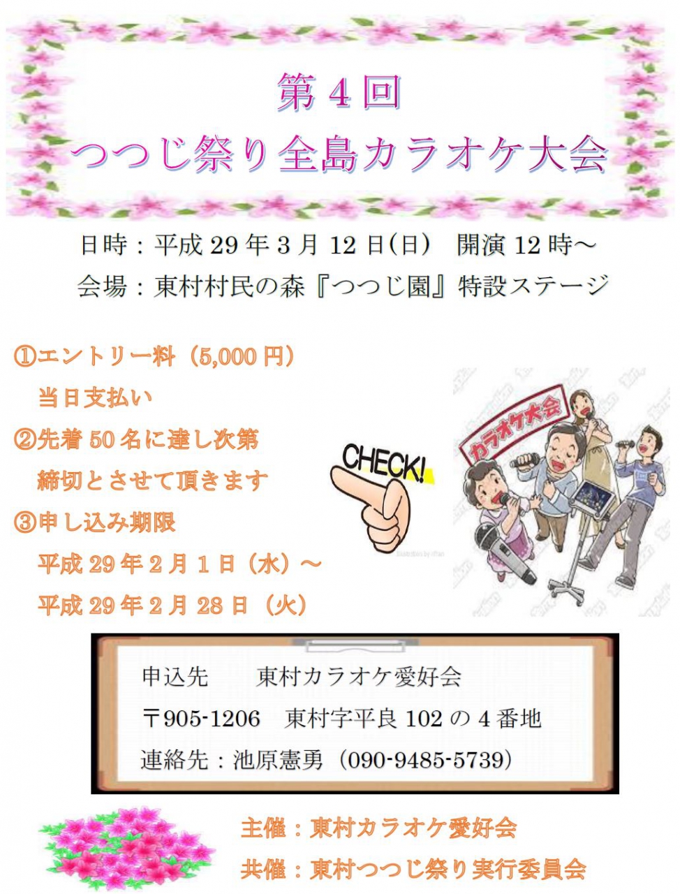 第4回つつじ祭り全島カラオケ大会の出場者募集について